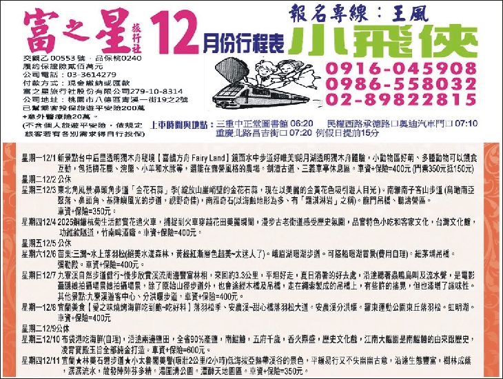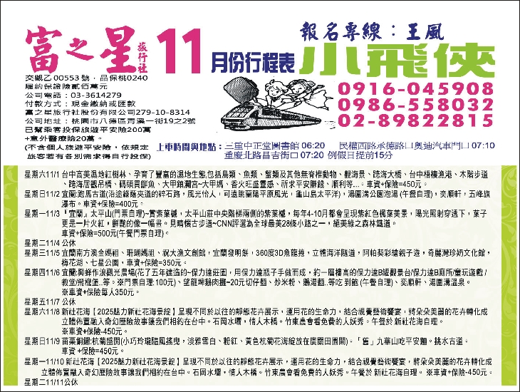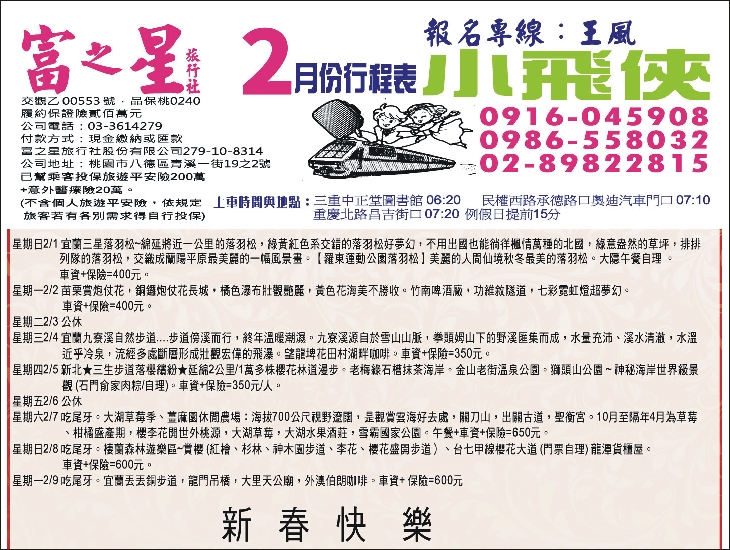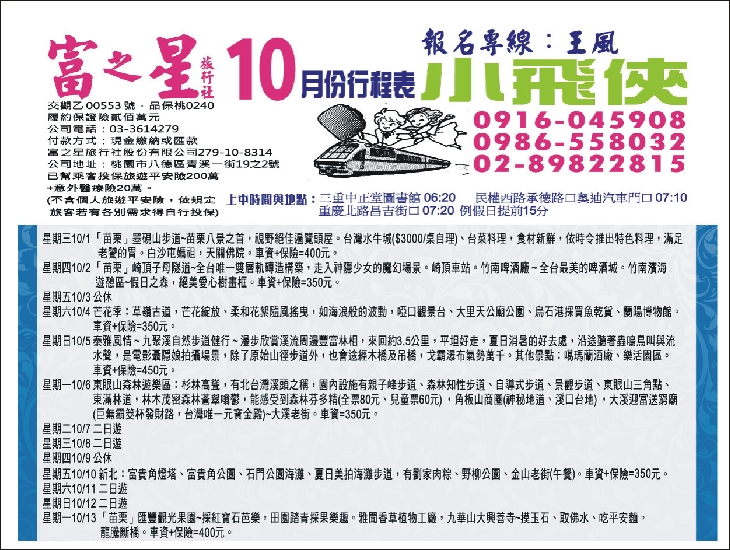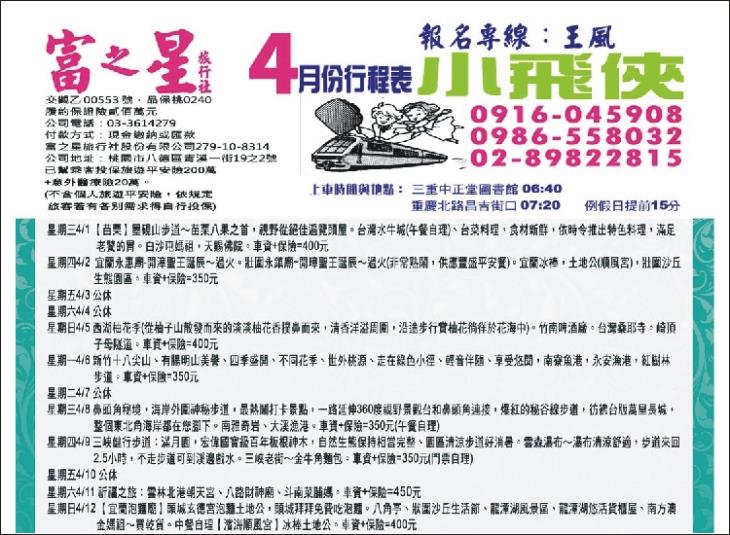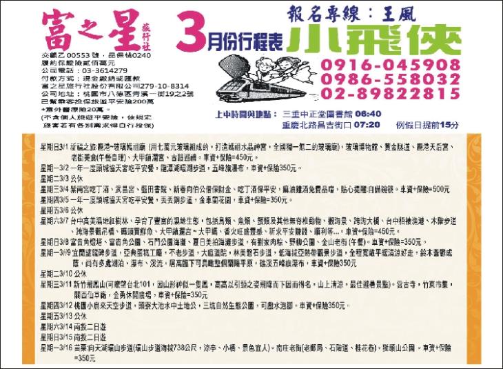 小飛俠旅遊瑞億車行富之星旅行社台北市旅遊