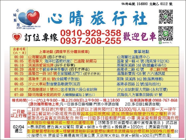 專線0910-929-358 LINE:091092 若有相關費用請自理.視時間路況本公司有權更改行程.非常感謝合!