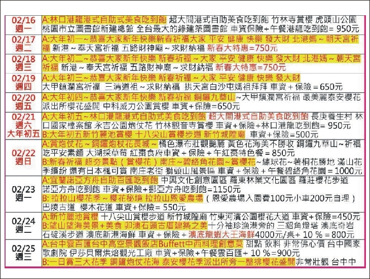🌸2/12(四)A:忠貞市場國旗屋~買年貨-三坑老街-石門大圳步道賞櫻-迎富送窮廟-車資+保險=400元