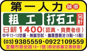 • 認真、負責者佳,中午12-13勿擾,無誠勿試,攜履歷親洽(9點~15點)