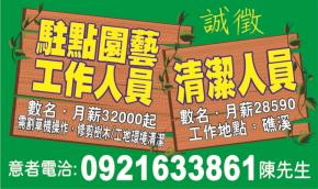 • 工作職缺: 駐點園藝工作人員