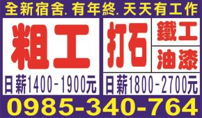 • 全新宿舍.有年終.天天有工作