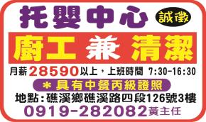 • 具有中餐丙級證,上班時間 7:30-16:30