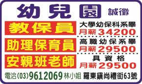 • 工作職缺: 安親班老師