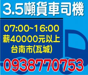 ~高薪~ 誠徵 3.5噸貨車司機 意洽0938770753彭先生
