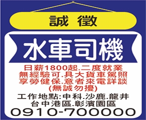 工作地點:中科.沙鹿.龍井.台中港區.彰濱園區