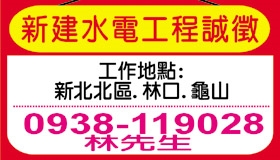 • 工作職缺: 水電人員