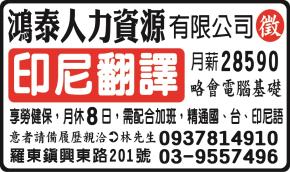 • 略會電腦基礎,享勞健保,月休8日,需配合加班,精通國/台/印尼語,意者請備履歷親洽