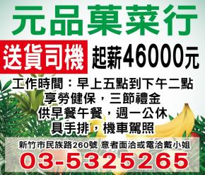• 工作職缺: 果菜行送貨司機