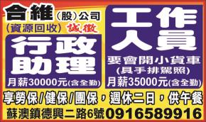 • 工作地點: 宜蘭縣蘇澳鎮德興二路6號