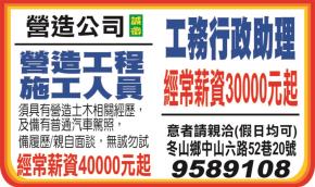 • 經常薪資30000元起,意者請親洽(假日均可)