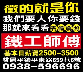 • 工作職缺: 鐵工師傅