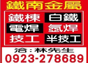 • 鐵棟,白鐵,電焊,氬焊,技工,半技工