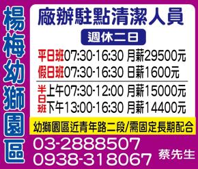 廠辦駐點清潔人員/半日班週休二日