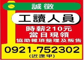 • 協助雜項整理及販售 當日現領