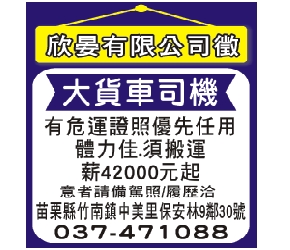 • 工作職缺: 大貨車司機