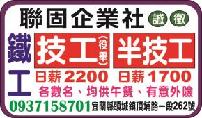 • 工作職缺: 鐵工半技工