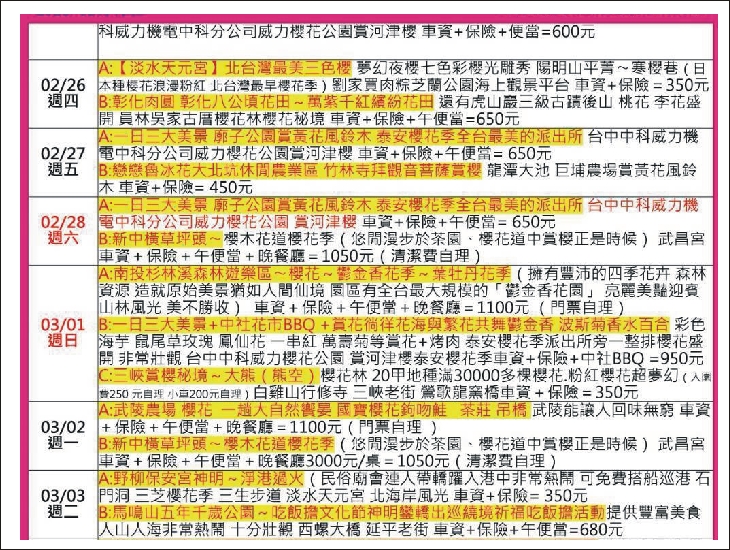 🌸2/13(五)A:一日三大美景 -廓子公園賞黃花風鈴木 -泰安櫻花季 全台最美的派出所-台中中科威力機電中科分公司-威力櫻花公園賞河津櫻-車資+保險+午便當= 700元