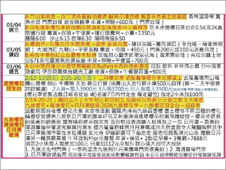 🌸2/12(四)A:忠貞市場國旗屋~買年貨-三坑老街-石門大圳步道賞櫻-迎富送窮廟-車資+保險=400元