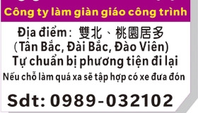 Địa điểm: 雙北、桃園居多( Tân Bắc, Đài Bắc, Đào Viên)