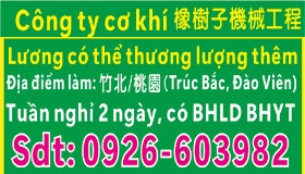 Nhân viên thi công bên ngoài/ lắp đặt thiết bị Nhân viên phòng vô khuẩn Không yêu cầu kinh nghiệm, cần ở kí túc / có cung cấp kí túc Lương 32000-45000 Nếu có bằng lái xe, chứng chỉ lái xe nâng và xe cẩu Lương có thể thương lượng thêm Địa điểm làm: 竹北/桃園( Trúc Bắc, Đào Viên) Tuần nghỉ 2 ngày, có BHLD BHYT