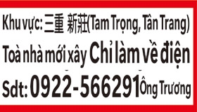 Toà nhà mới xây Chỉ làm về điện Thợ chính Lương từ 2300/ ngày, dựa theo năng lực điều chỉnh lương Thợ phụ Lương từ 1800/ ngày, dựa theo năng lực điều chỉnh lương Thợ học nghề Lương từ 1400/ ngày Có bao ăn trưa và nước uống, thưởng ba lễ lớn, liên hoan nhân viên, thưởng cuối năm Đi làm nghiêm cấm uống rượu