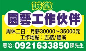 • 工作職缺: 園藝工作伙伴