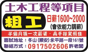 • 半個月領一次薪資(會依能力調薪),具手排駕照佳