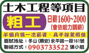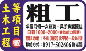 • 工作職缺: 誠徵粗工