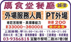 • 工作職缺: PT外場