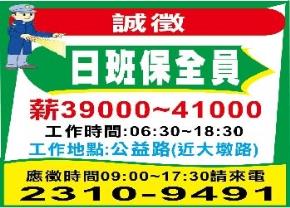 • 工作職缺: 日班保全