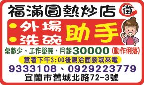 • 桌數少,工作單純,(動作俐落)~意者請於下午3:00後親洽面談或來電
