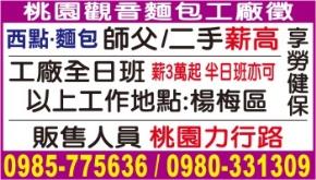 • ★桃園觀音麵包工廠徵★
