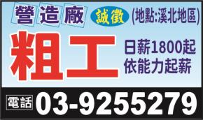 • 工作職缺: 粗工