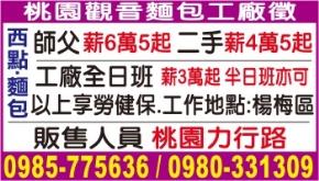 • ★桃園觀音麵包工廠徵★