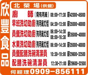欣豐食品 誠徵 台大自助餐場 ~高薪~