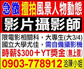 • 限電影相關科大專生(大3;4)國立大學尤佳,