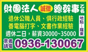 • 退休公職人員/俱行政經驗,善電腦打字/文書作業經驗,週休二日,意者請電