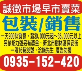 • 【市場早市賣菜誠徵】