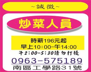 • 工作職缺: *炒菜人員