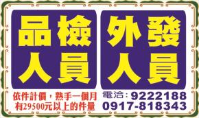 • 工作職缺: 外發人員