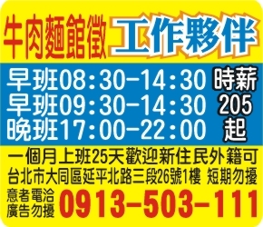 • 工作職缺: 🐮工作夥伴【牛肉麵館徵】