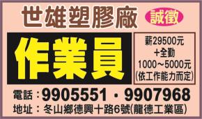 • 工作職缺: 作業員