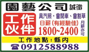 • 有經驗佳,月薪亦可,具汽照,會開車,會割草