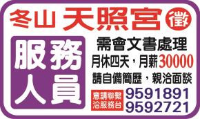 • 需會文書處理,月休四天,請自備簡歷,親洽面談,意請聯繫洽服務台