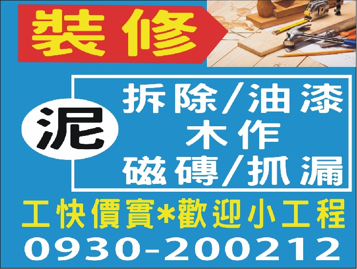 裝修-拆除/油漆/木作/磁磚/抓漏